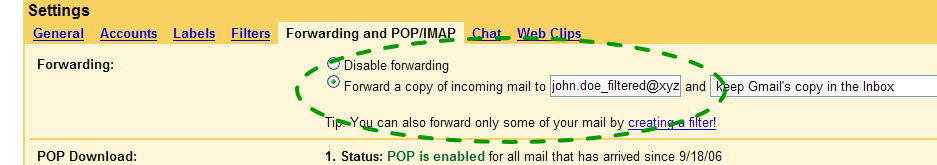Set this to forward to the second corporate email address of your staff (i.e., the john.doe_filtered@xyz.com address, as shown in the above screen capture).